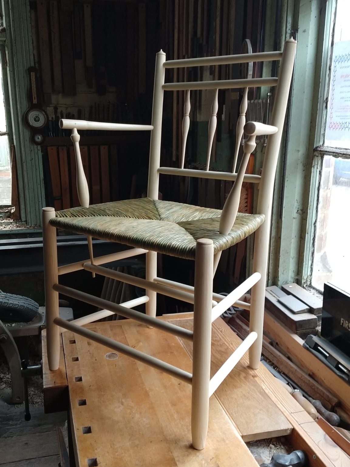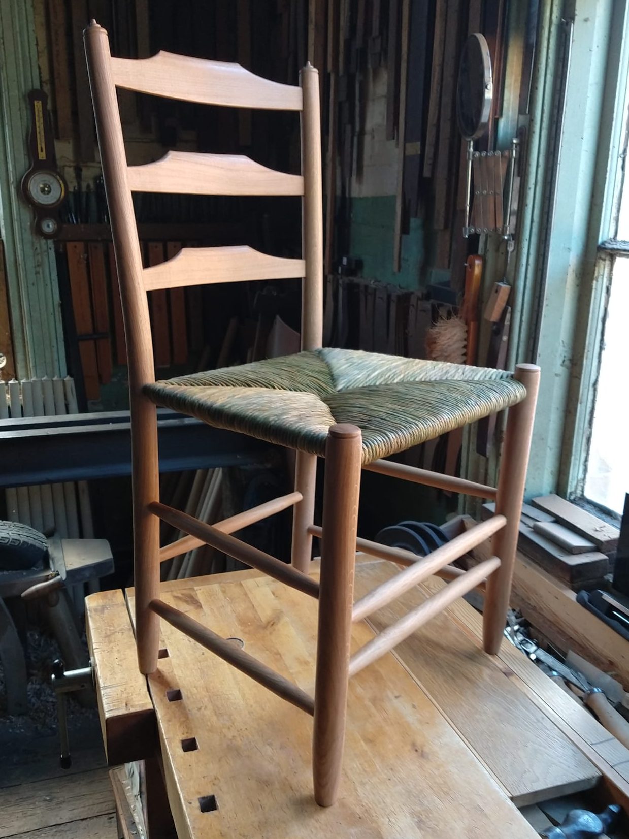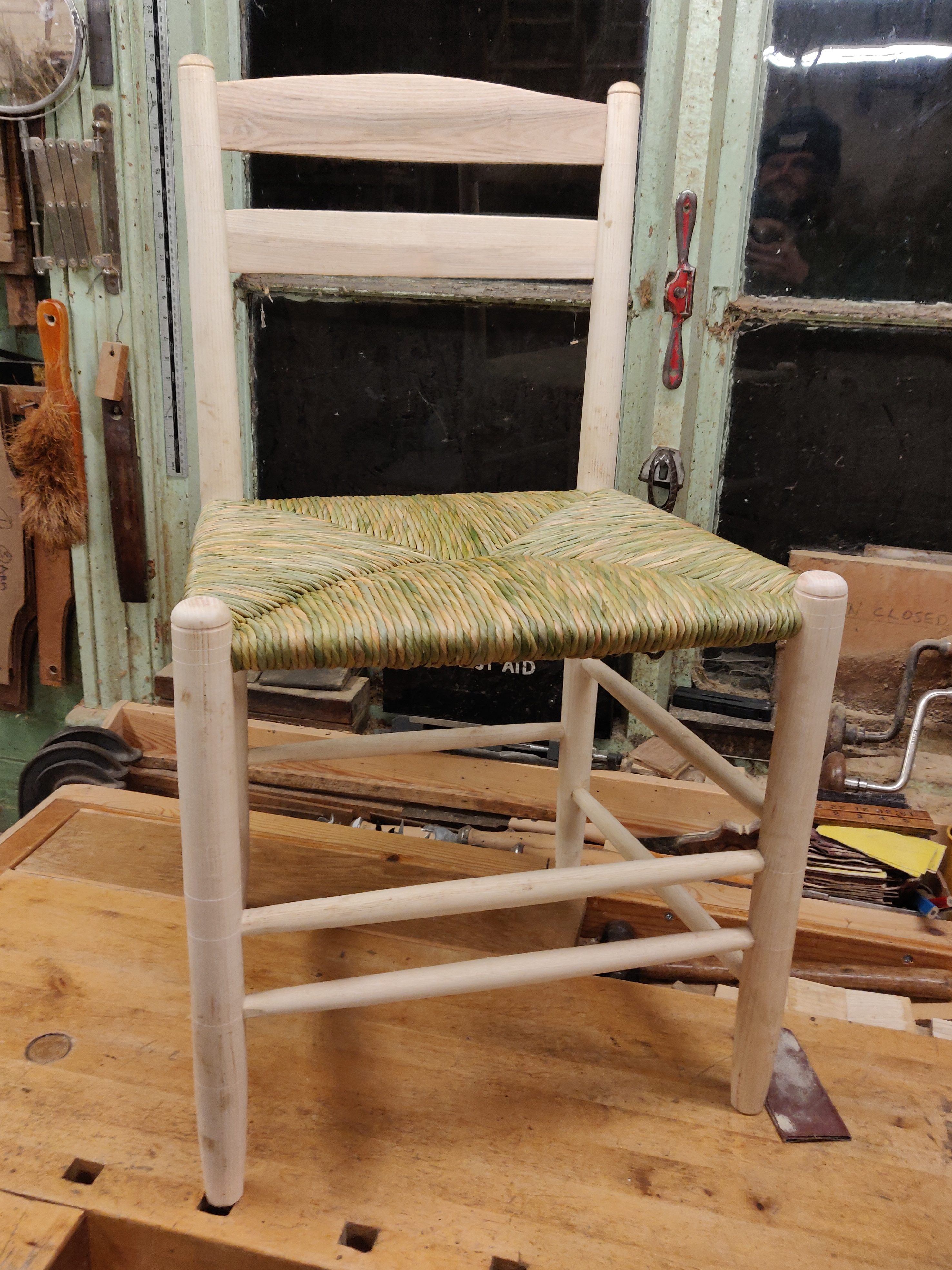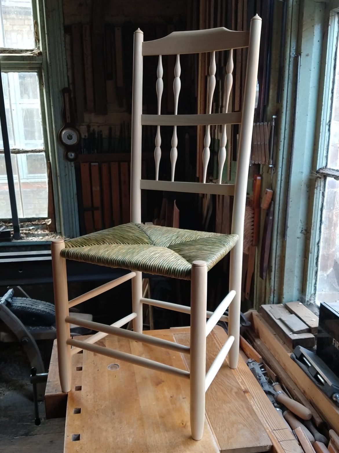 A good rush seat should last around thirty years, but eventually they will need re-seating. If you have a chair that needs a new seat, whether it’s one of my dad’s or grandad’s chairs or a different maker entirely, I am happy to put in a new seat for you.