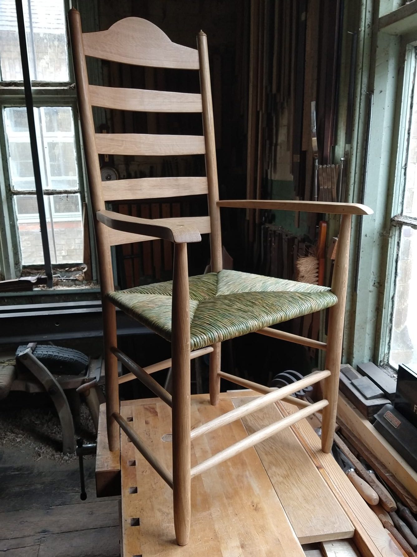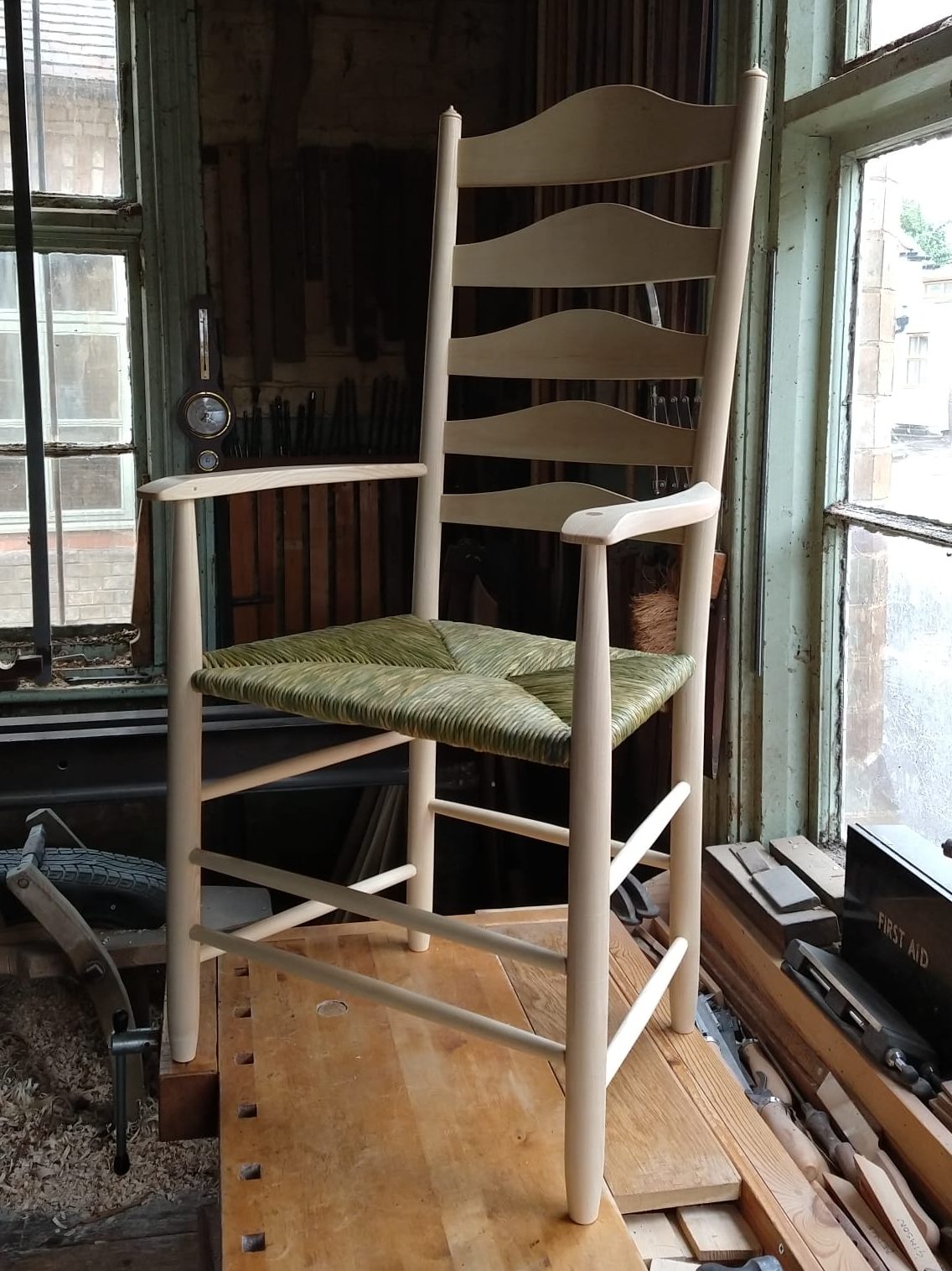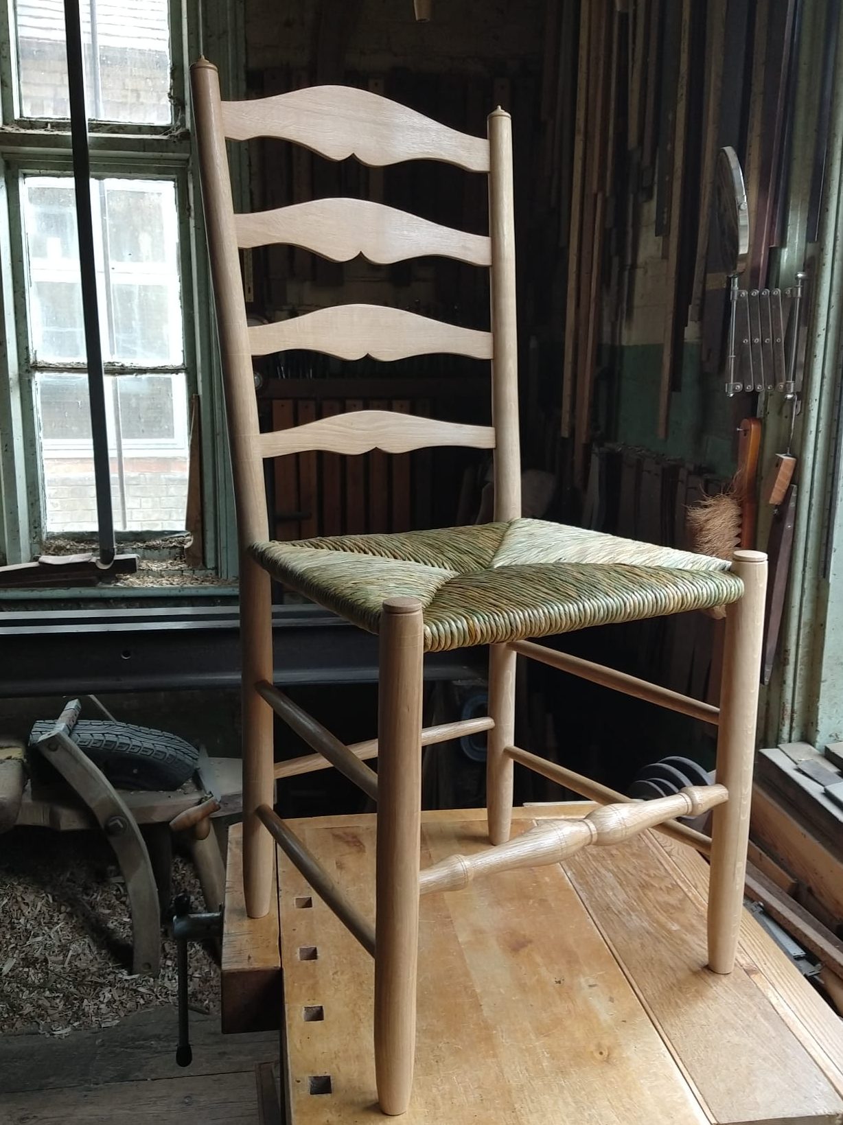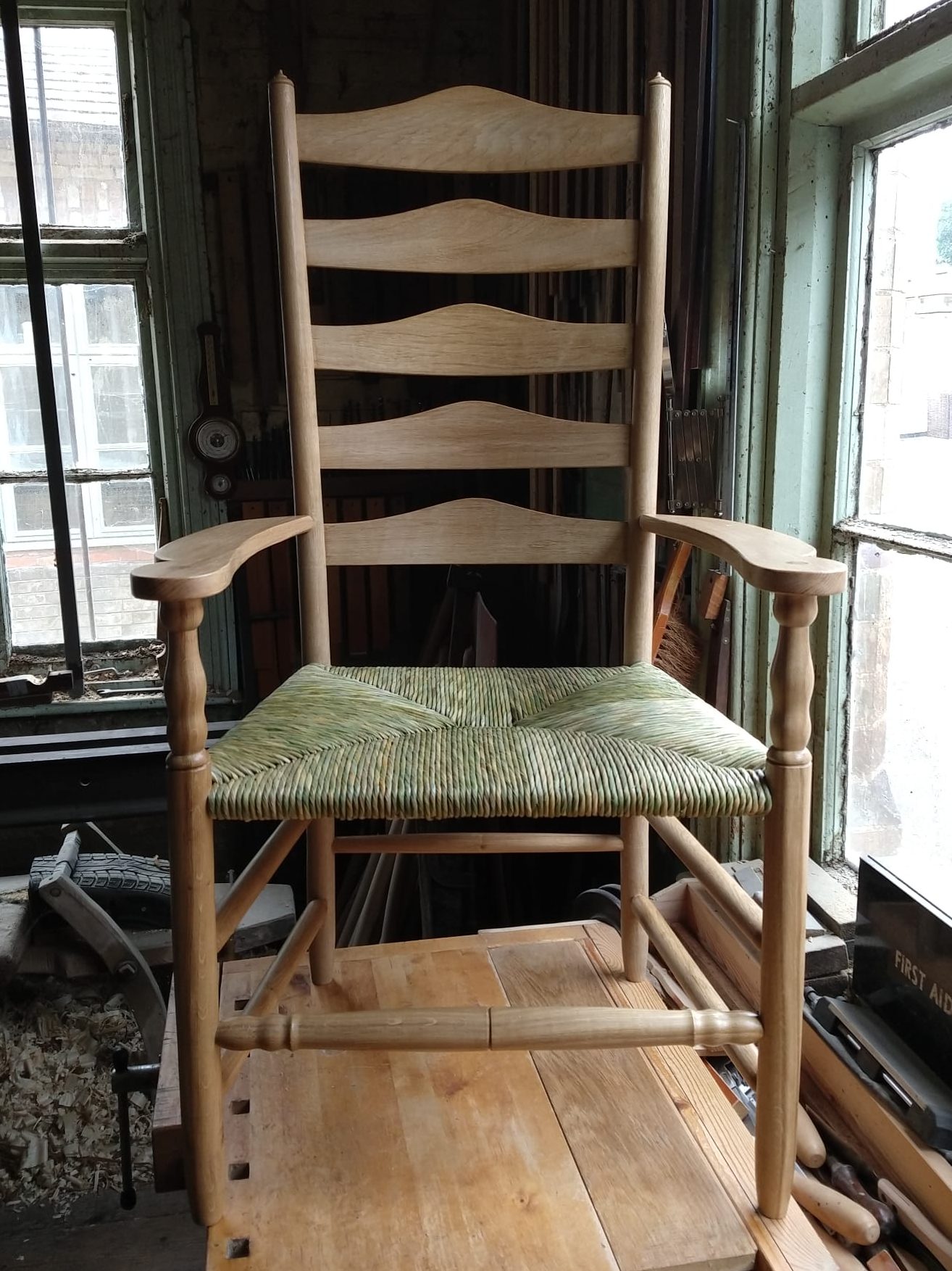 A good rush seat should last around thirty years, but eventually they will need re-seating. If you have a chair that needs a new seat, whether it’s one of my dad’s or grandad’s chairs or a different maker entirely, I am happy to put in a new seat for you.
