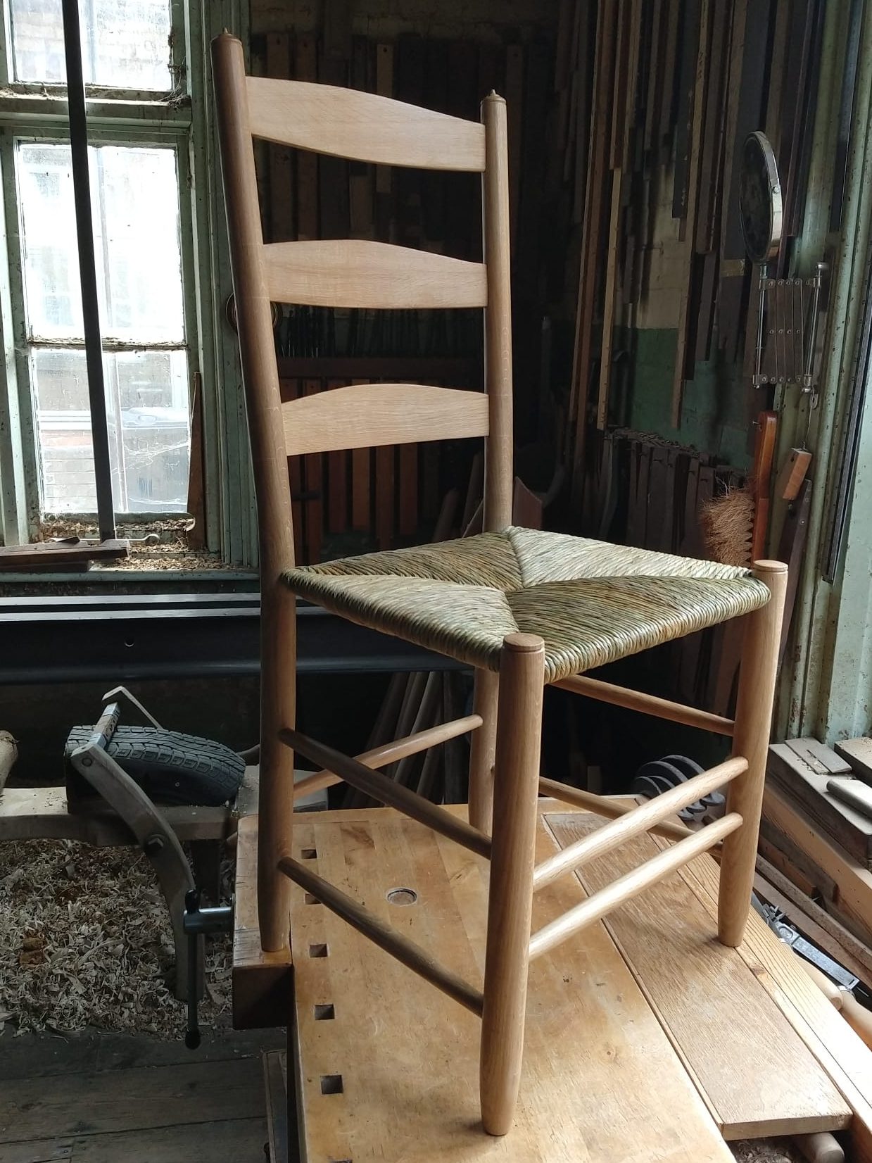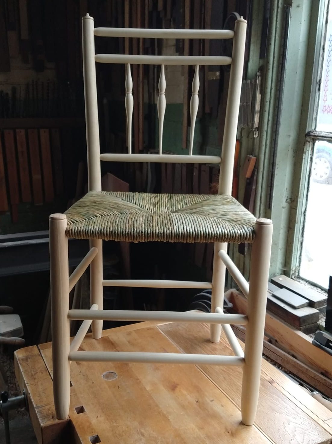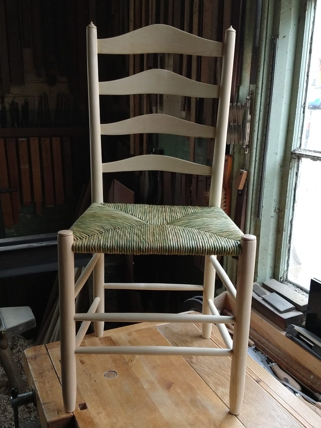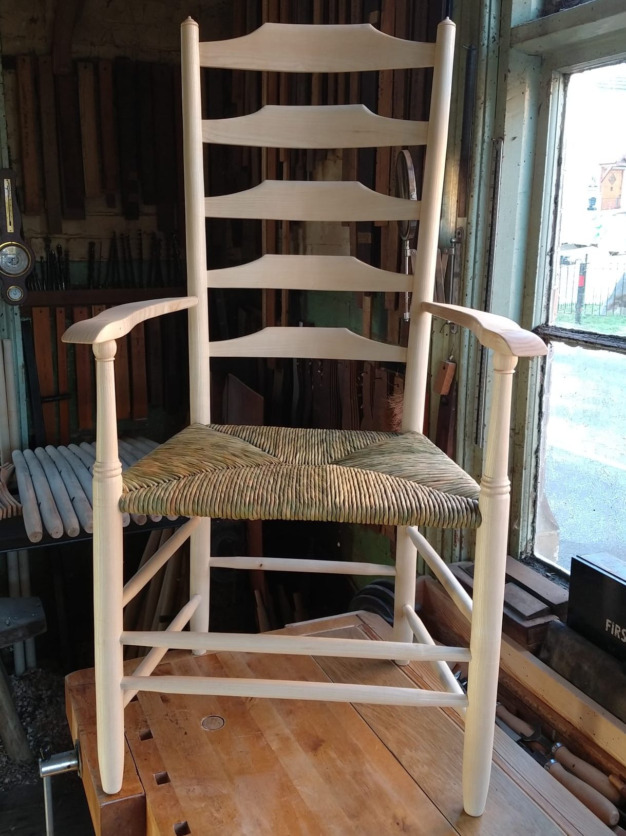 A good rush seat should last around thirty years, but eventually they will need re-seating. If you have a chair that needs a new seat, whether it’s one of my dad’s or grandad’s chairs or a different maker entirely, I am happy to put in a new seat for you.